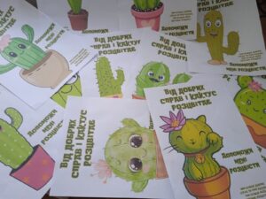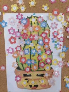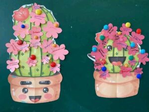 Учні 3-Б класу грали у гру ” Допоможи кактусу розцвісти”. Чим більше добрих справ пригадали тим більше “розцвіло” квіточок на кактусі.