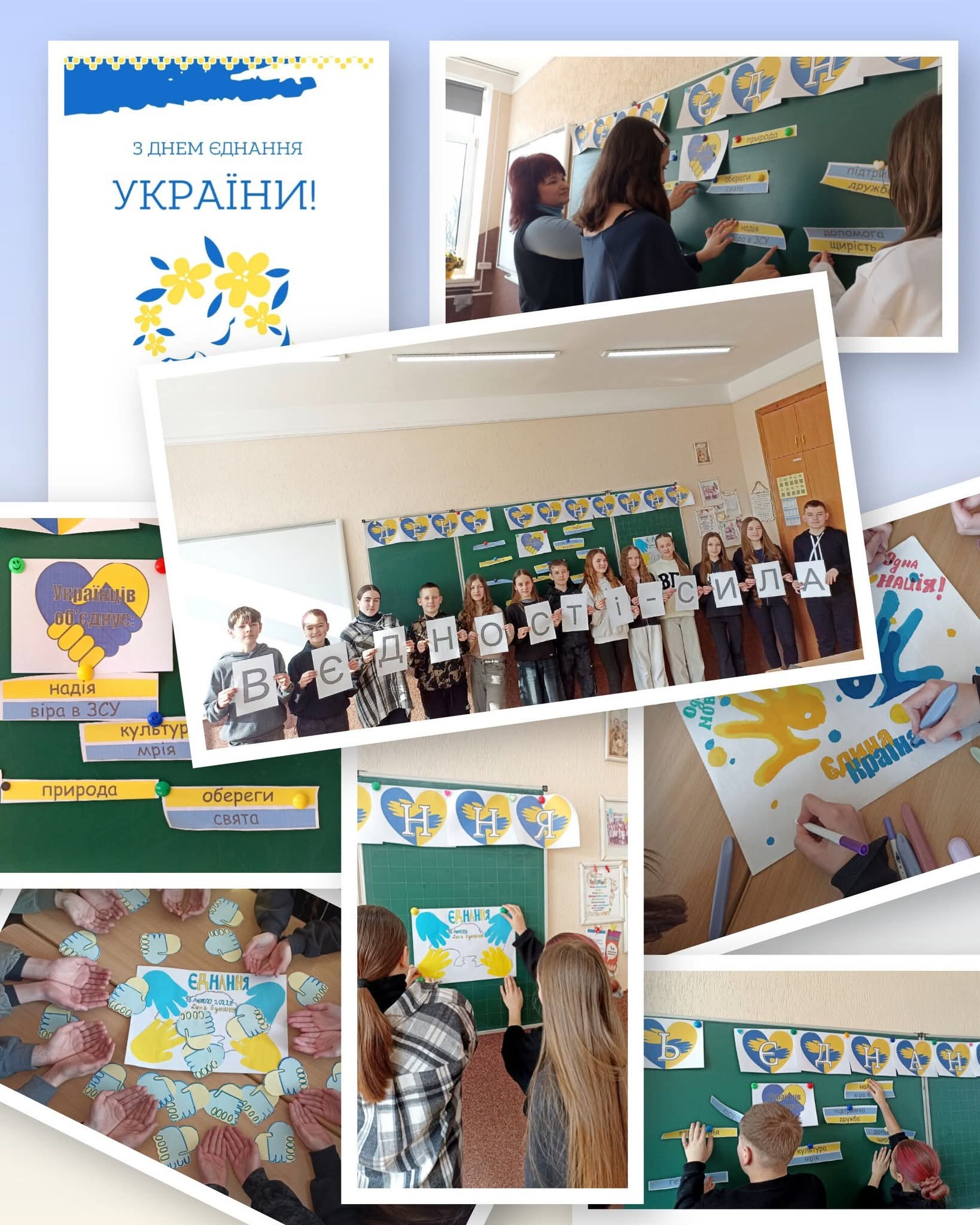 Учні міркували, що саме нас об’єднує: любов до України, повага одне до одного, спільні цінності, мова, традиції та прагнення до миру. Діти дійшли висновку, що єдність починається з простих речей — підтримки, добрих слів і спільної роботи.